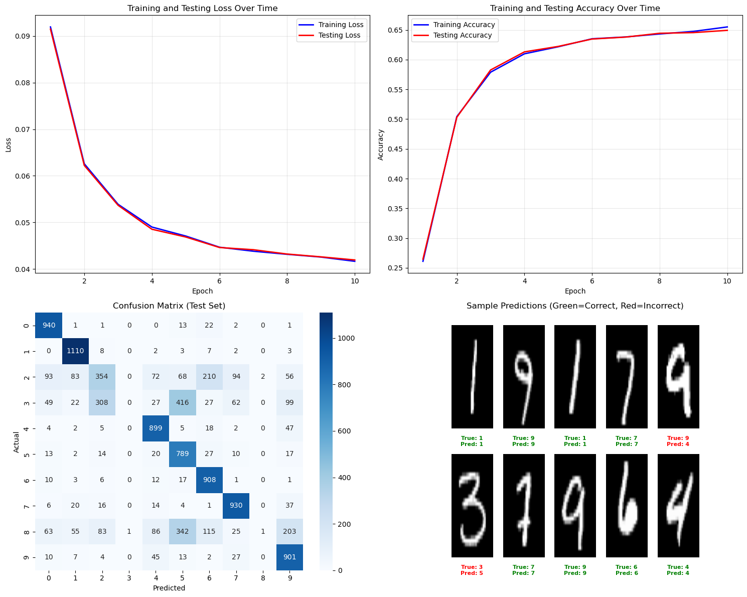 print(f" Testing Accuracy: {test_accuracies[-1]:.4f} ({test_accuracies[-1]*100:.2f}%)")